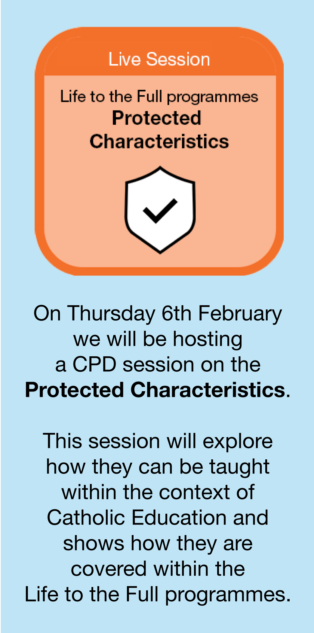 Why not join us for a CPD session on the Protected Characteristics? This session will explore how they can be taught within the context of Catholic education and shows how they are covered within the Life to the Full programmes.